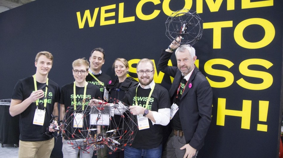 This week, a humming noise can be heard at CES in Las Vegas every couple of hours—that is when the drones emerge at the Swiss Pavilion. While the noise may intrigue some onlookers, others have particularly come to watch the demonstrations that take place for 15 minutes, which are introduced by the head of Presence Switzerland, Nicolas Bideau. However, the 200 m² area spread around the stand is not sufficiently large to house all the spectators, some of whom try to catch a glimpse of the action, standing on their tiptoes in the aisles. In every demonstration and the subsequent follow-up Q&A session, it is evident that these aircraft—the majority of which were created at EPFL—are attracting a great deal of interest from professionals searching for potential investment opportunities or partnerships.